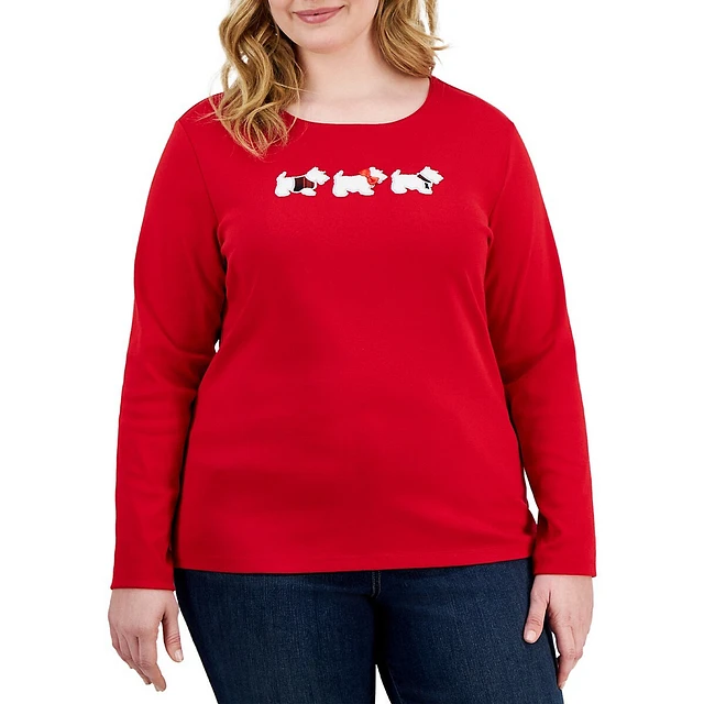 Plus Scottie-Dog Walk Long-Sleeve Top