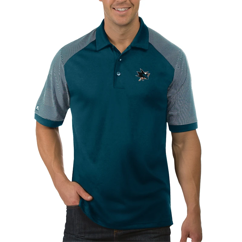 Polo Engage Antigua bleu sarcelle/blanc pour homme, San Jose Sharks