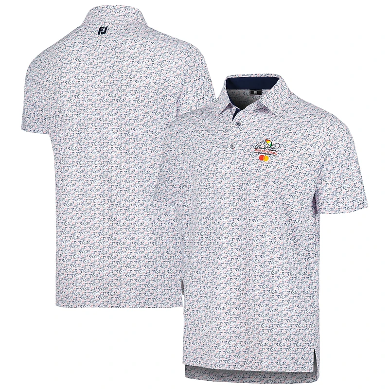 Polo FootJoy blanc Arnold Palmer Invitational Doodle pour hommes en piqué extensible à col auto