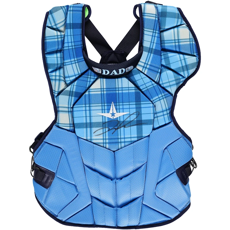 Protecteur de poitrine bleu autographié par Jose Trevino des Yankees de New York lors de la saison 2023 de la MLB