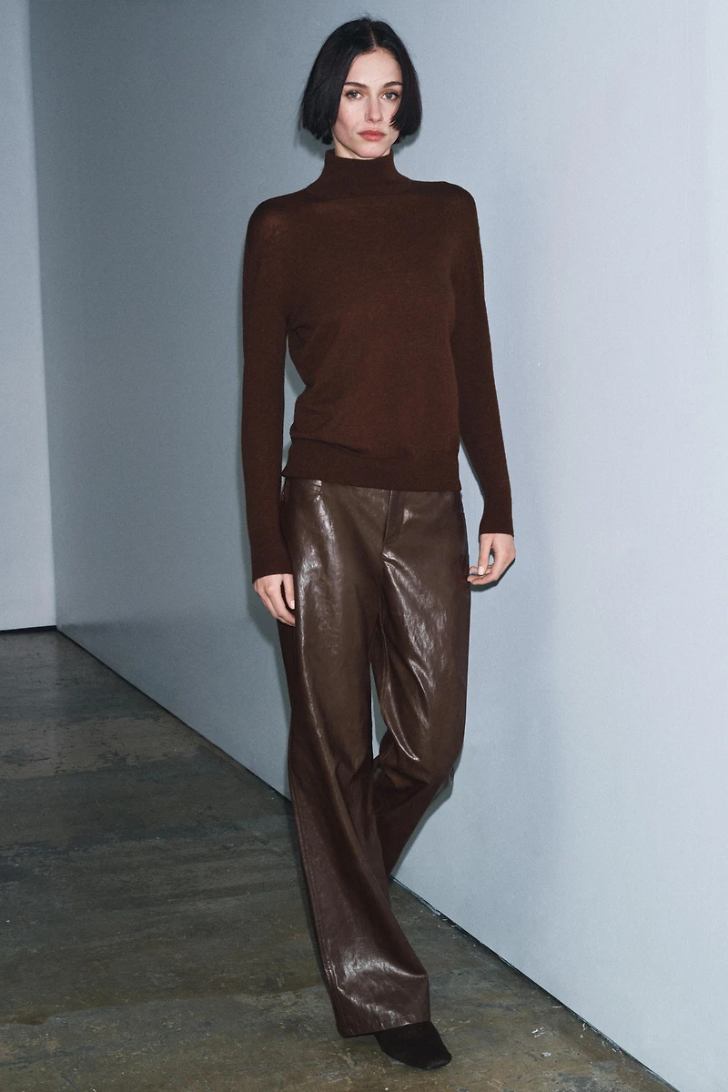 Pull 100 % laine avec col montant et manches longues. Détail de tissu avec un toucher doux.