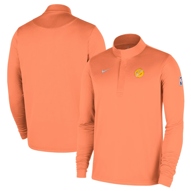 Pull Nike orange Cleveland Cavaliers 2025/26 City Edition Remix Authentic Coaches Dri-FIT à demi-zip pour homme