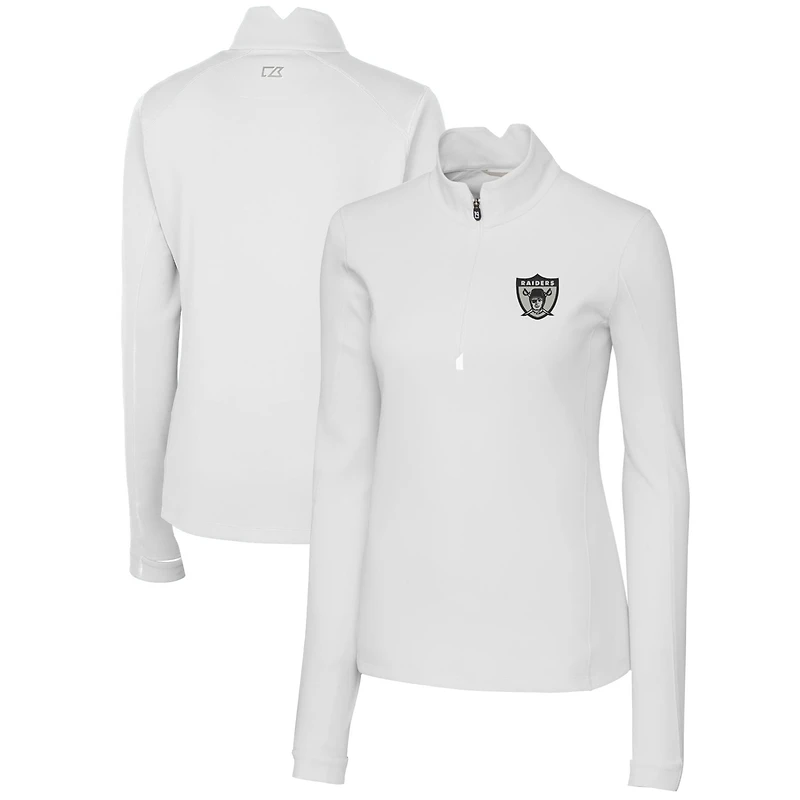 Pull-over blanc à fermeture éclair quart de tour pour femme Cutter & Buck avec logo rétro des Las Vegas Raiders