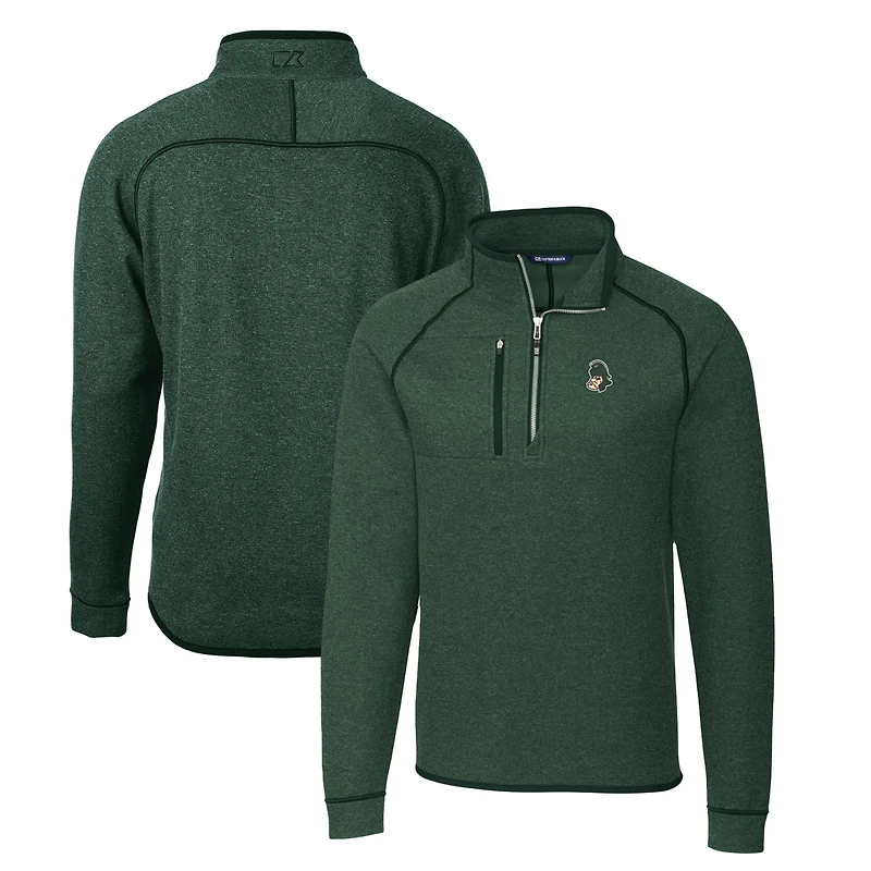 Pull-over en tricot demi-zippé pour homme, vert chiné, Cutter & Buck, Michigan State Spartans, Mainsail