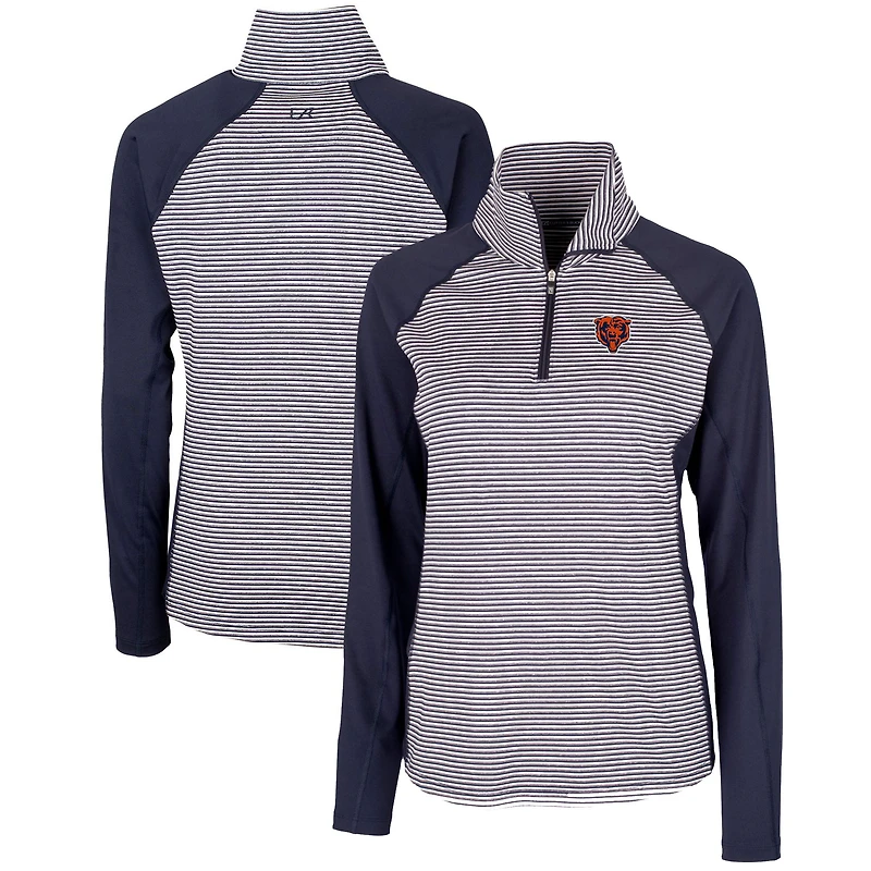 Pull-over extensible à demi-zip bleu marine avec logo rétro des Chicago Bears pour femme Cutter & Buck