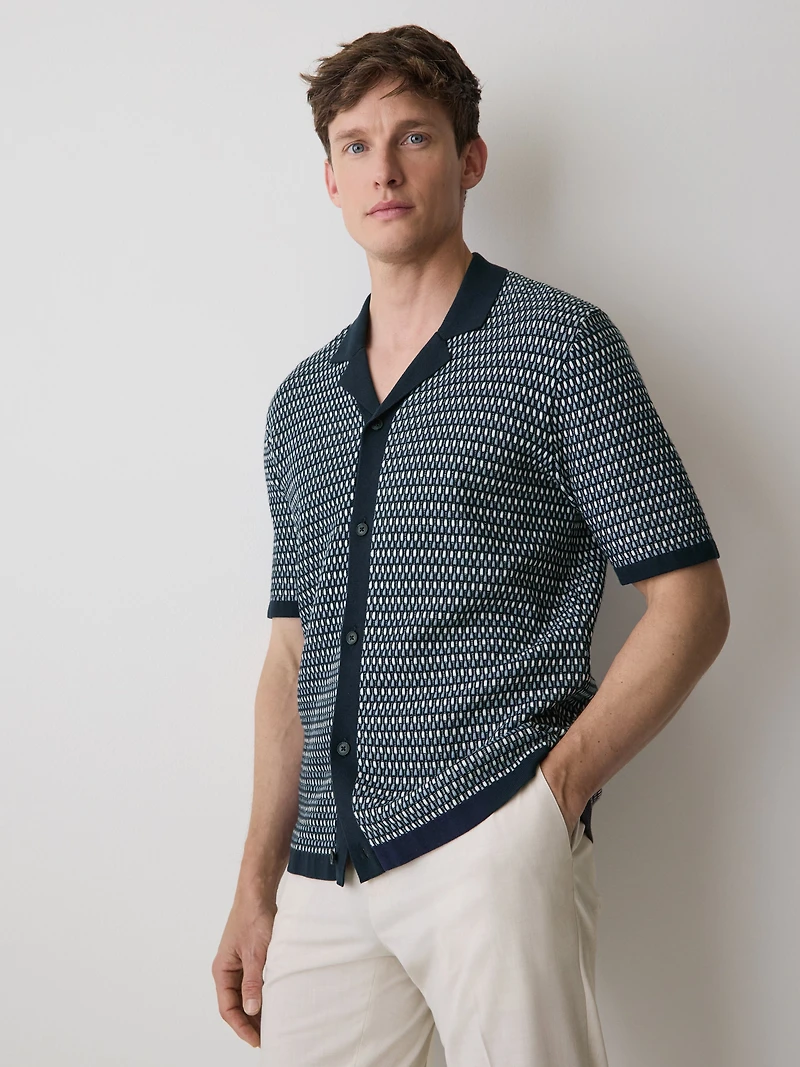 Ce pull à manches courtes décoré d'un unique motif à rayures et doté d'un col camp se porte parfaitement par-dessus un t-shirt ou seul pour un style qui saura se démarquer.