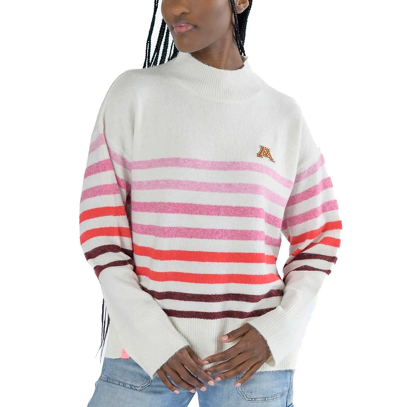 Pull surdimensionné à col montant Simone Striple pour femme des Golden Gophers du Minnesota de Lusso White