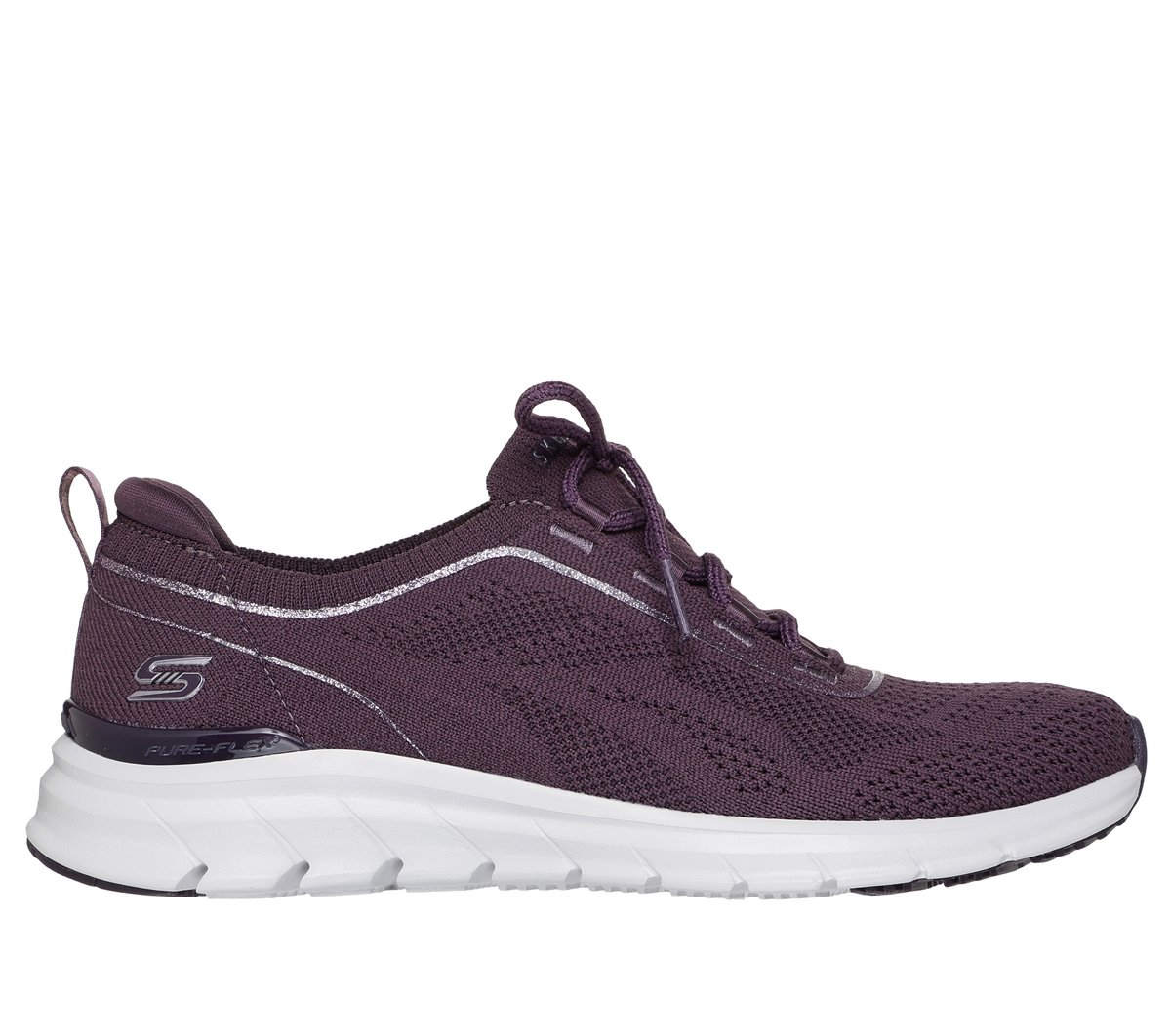 Style sport et confort hors pair caractérisent la chaussure Skechers Pure Flex - Midnight Star. Cette chaussure végétalienne et décontractée comprend des lacets décoratifs fixes, une empeigne en tricot technique Stretch Fit™ et une semelle intérieure coussinée Skechers Air-Cooled Memory Foam™.
