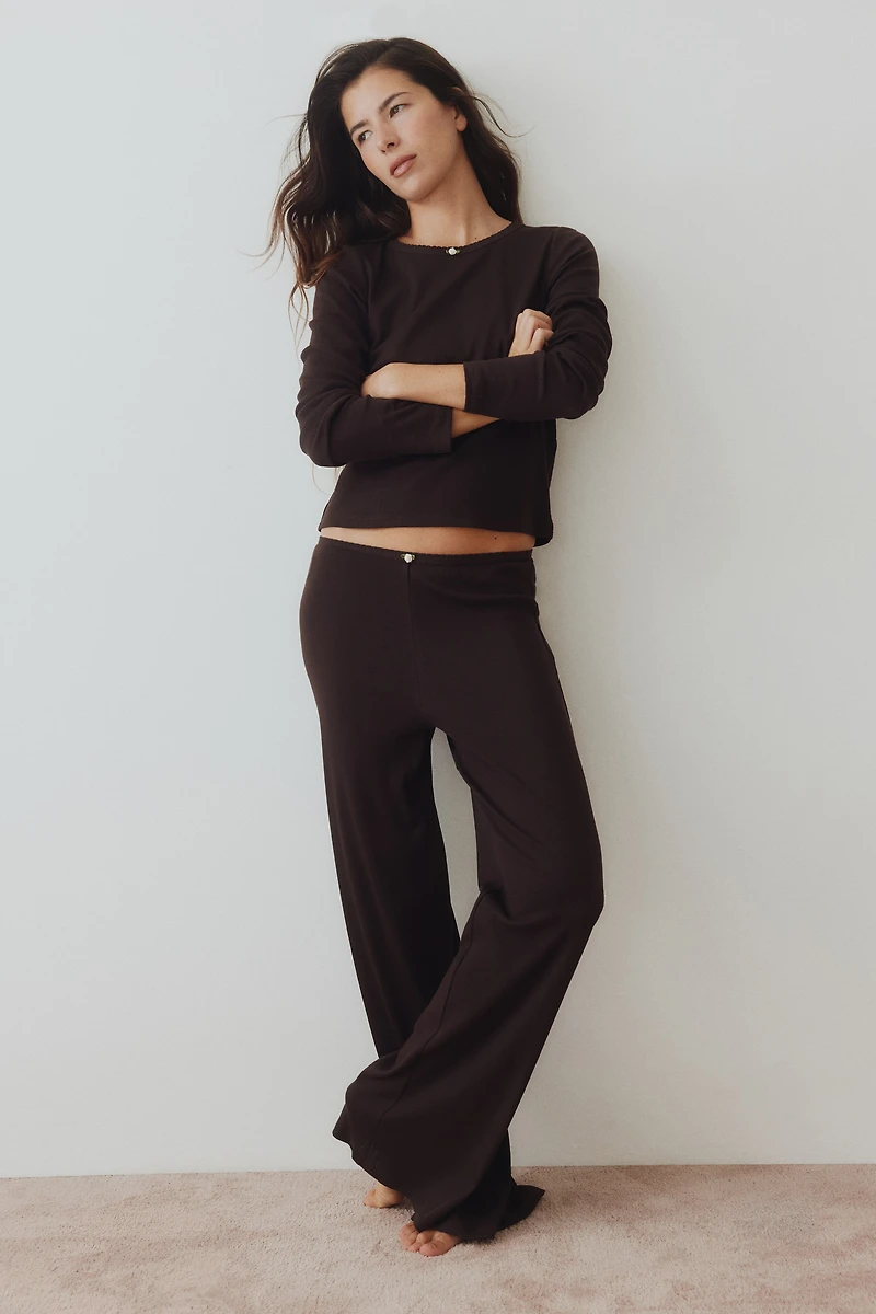 Pyjama en jersey côtelé, composé d'un haut et d'un pantalon, tous deux agrémentés d'une petite rose appliquée devant. Haut avec encolure ronde et manches longues. Pantalon avec élastique à la taille.
