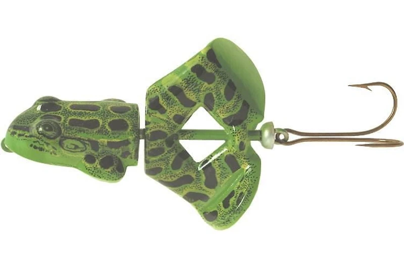 Le Buzz'n Frog est un buzz bait déguisé, la seule différence étant que lorsque vous arrêtez la récupération, ce leurre flotte tête haute comme une grenouille. Les pattes arrière à rotation libre brassent la surface de l'eau et les crochets arrière semi-sans mauvaises herbes glissent facilement à travers l'herbe épaisse, les mauvaises herbes et la mousse.