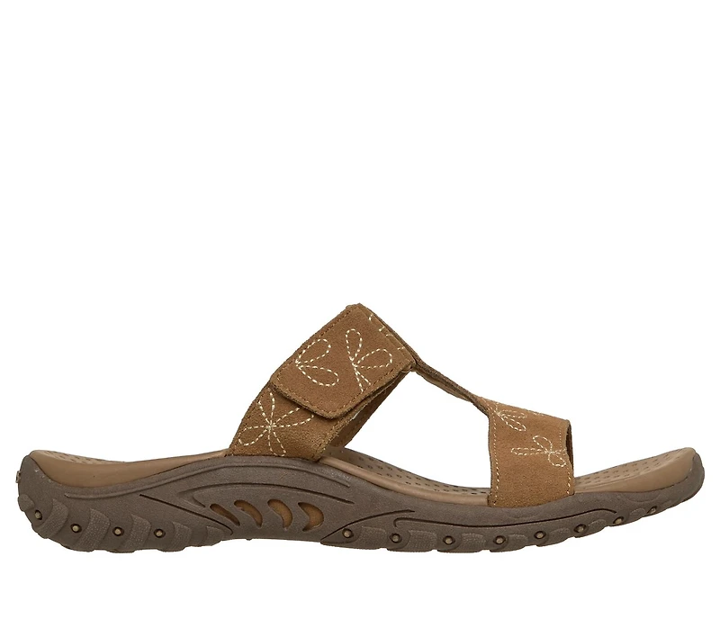 Head outdoors in premium breezy style wearing Skechers Reggae® - Forest Belle. This H-strap trail sandal features a genuine suede upper with embroidery details, a cushioned footbed, and a shock-absorbing Reggae® midsole for added confidence on your adventures.