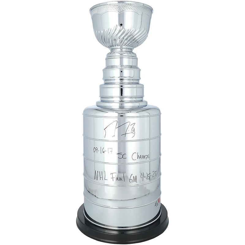 Rehaussez votre collection de souvenirs des Penguins de Pittsburgh et célébrez l'une des plus belles carrières de la LNH avec cette réplique de la Coupe Stanley de 2 pieds autographiée par Marc-André Fleury. Le légendaire gardien a remporté trois Coupes Stanley avec la franchise, dont deux titres consécutifs en 2016 et 2017. Sa signature distinctive et ses inscriptions commémoratives font de cette magnifique réplique un incontournable pour tout amateur passionné. Dotée d'un hologramme numéroté et inviolable, cette pièce de collection est authentifiée grâce à la technologie FanSecure et peut être vérifiée en ligne.