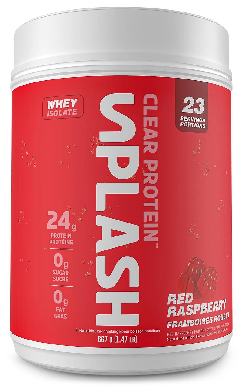 Revolution Nutrition, Splash Clear Isolate Protein, Poudre d’Isolat de Whey 100 % Clair, 24 g de Protéines par Dosette, Zéro Sucre, Zéro Glucide, Saveur Candy, Collagène, 667 g, Framboise Rouge (23 Portions)