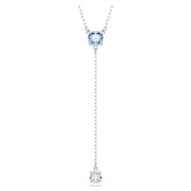 Rhodium Plated Necklace with Round Cut Blue Crystal - 18