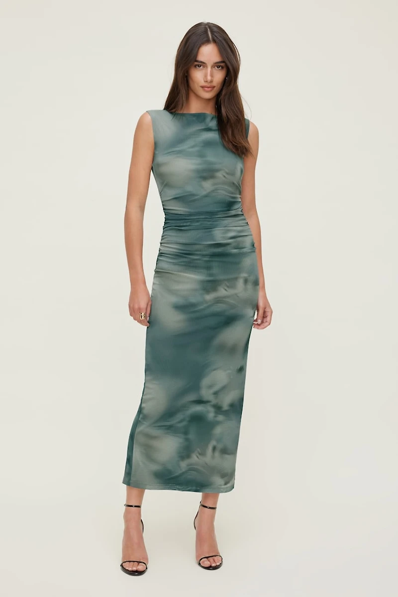 Cette robe maxi est fabriquée à partir d'un tissu léger en maille et possède juste assez d'extensibilité pour épouser vos courbes à la perfection. Entièrement doublée pour plus de confort, elle est conçue de manière à offrir une coupe moulante au buste avec une jupe colonne. Portez-la pour les soupers aux chandelles en ville.