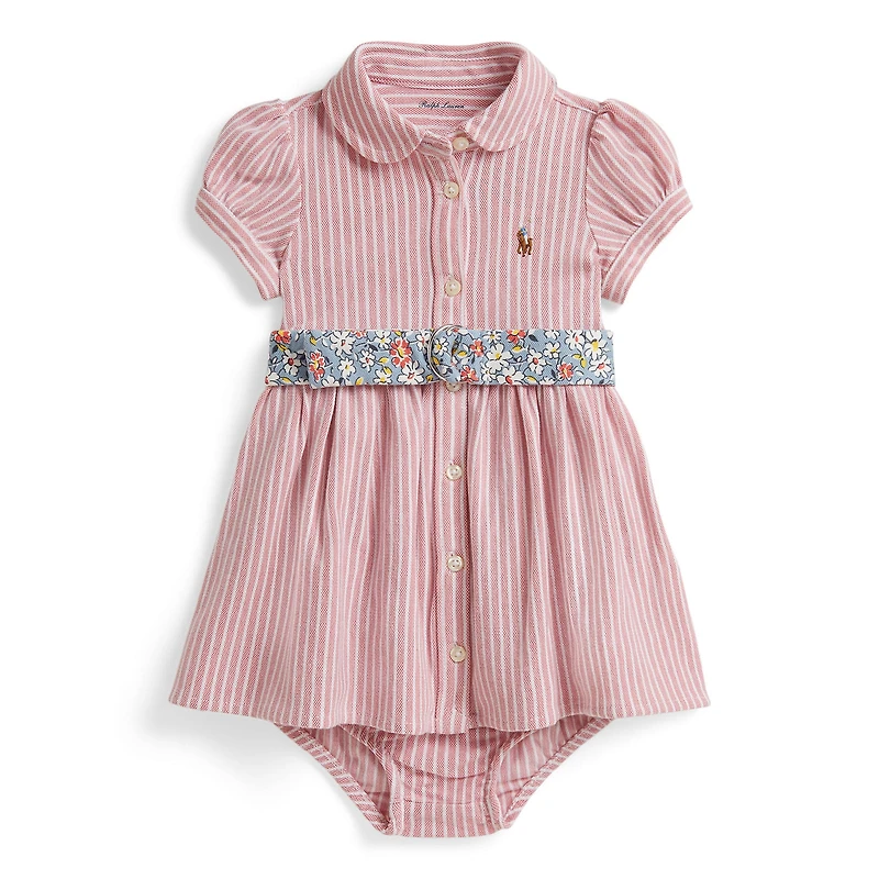 Idéale pour les beaux jours, cette robe à rayures est confectionnée en maille de coton à l'aspect chiné, rappelant notre tissu Oxford emblématique. Une ceinture assortie complète la tenue. Caractéristiques: