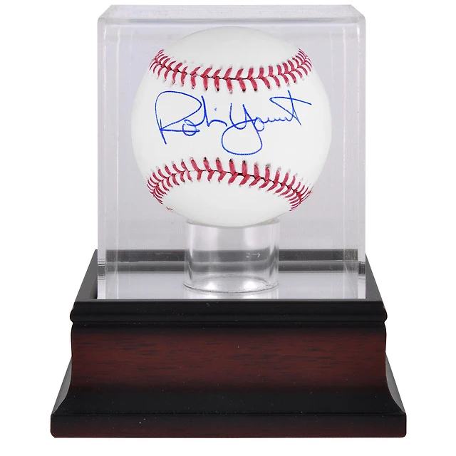 Robin Yount Milwaukee Brewers Autographed Baseball and Mahogany Baseball Display Case