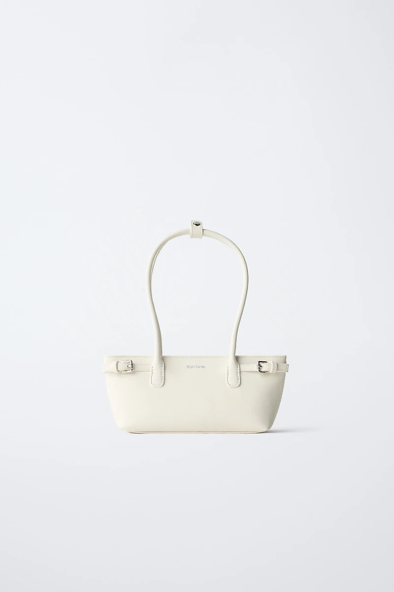 Sac porté épaule avec détail de boucles. Fermeture zippée. Bandoulière.
