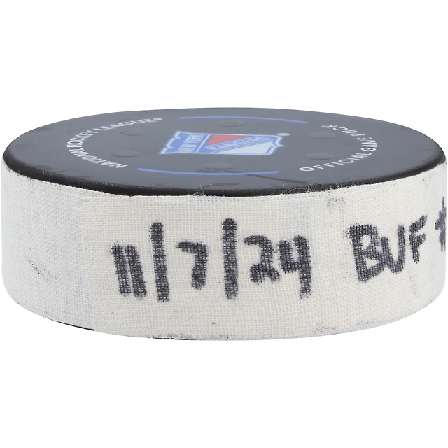 Sam Lafferty Buffalo Sabres Game-Used Goal Puck from November 7, 2024 vs. New York Rangers