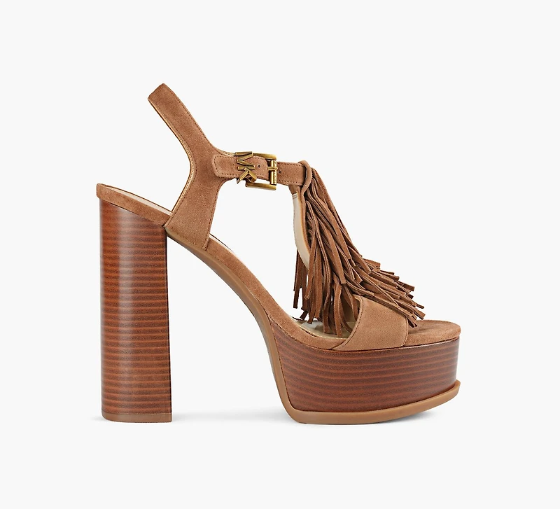 Audacieuses et résolument mode, les sandales Indra Platform de Michael Michael Kors attirent tous les regards. Confectionnées en suède luxueux, elles se distinguent par leurs franges superposées, un bout ouvert et une semelle plate. Dotées d’une fermeture à boucle, elles se portent idéalement avec des longueurs courtes pour en révéler toute l’allure.