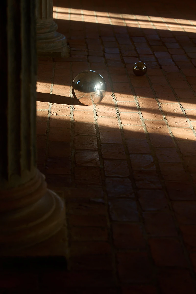 Sculpture sphérique en verre à effet chromé.