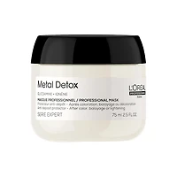 Le masque protecteur anti-dépôt Metal Detox protège la fibre capillaire des dépôts de particules après tout service de couleur, de balayage ou de décoloration. Sa formule en crème riche apporte de la cosméticité et empêche les nouvelles particules métalliques de se redéposer sur le cheveu. Le métal à l'intérieur de la fibre crée un risque de casse et a un impact négatif sur les résultats de la couleur pendant les services en salon. Sa concentration dans les cheveux varie en fonction de leur porosité et de la qualité de l'eau qui est utilisée lors des lavages. La technologie brevetée de ce masque est concentrée en Glicoamine, une molécule suffisamment petite pour pénétrer et neutraliser le métal à l'intérieur de la fibre. Les cheveux sont moins poreux, intensément nourris et incroyablement brillants.
