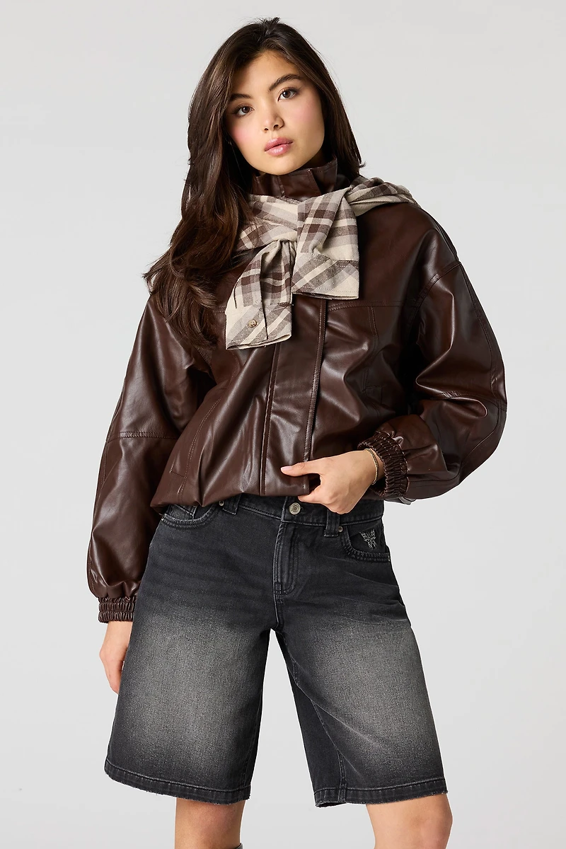 Short en denim à taille basse avec motif brodé Papillon