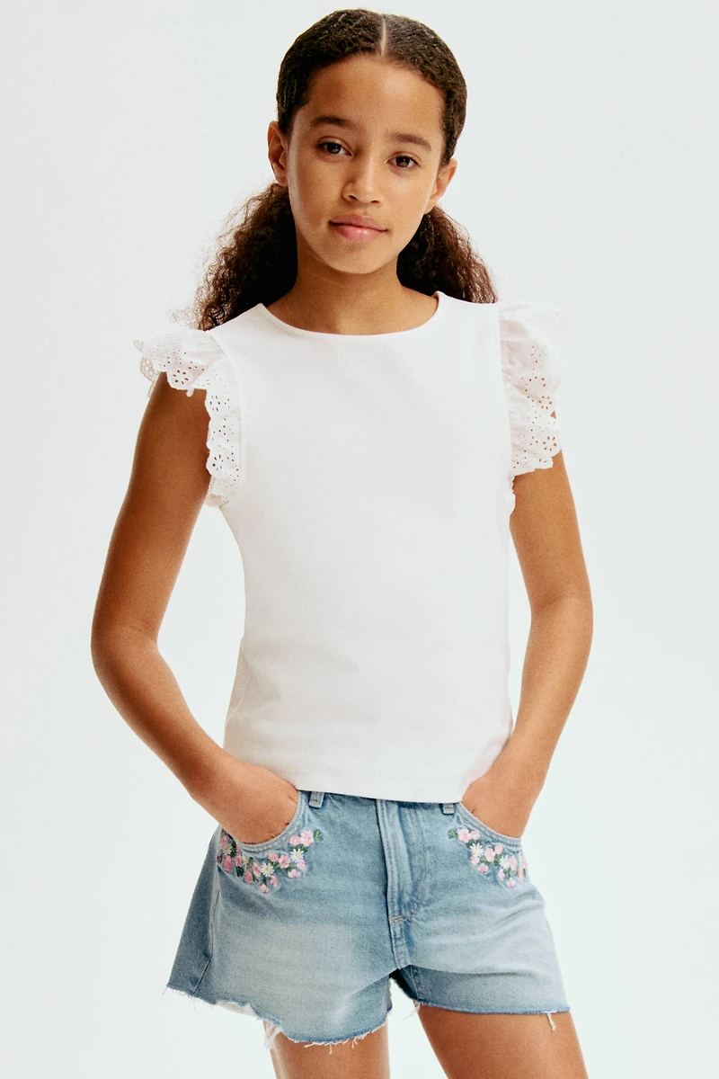 Short en denim avec détails brodés