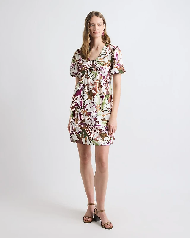 Short-Puffy-Sleeve V-Neck Fluid Mini Dress
