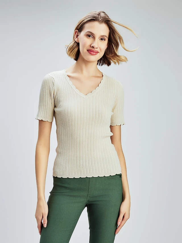 Women's Knit Short Sleeve Crew-Neck Sweater | M
