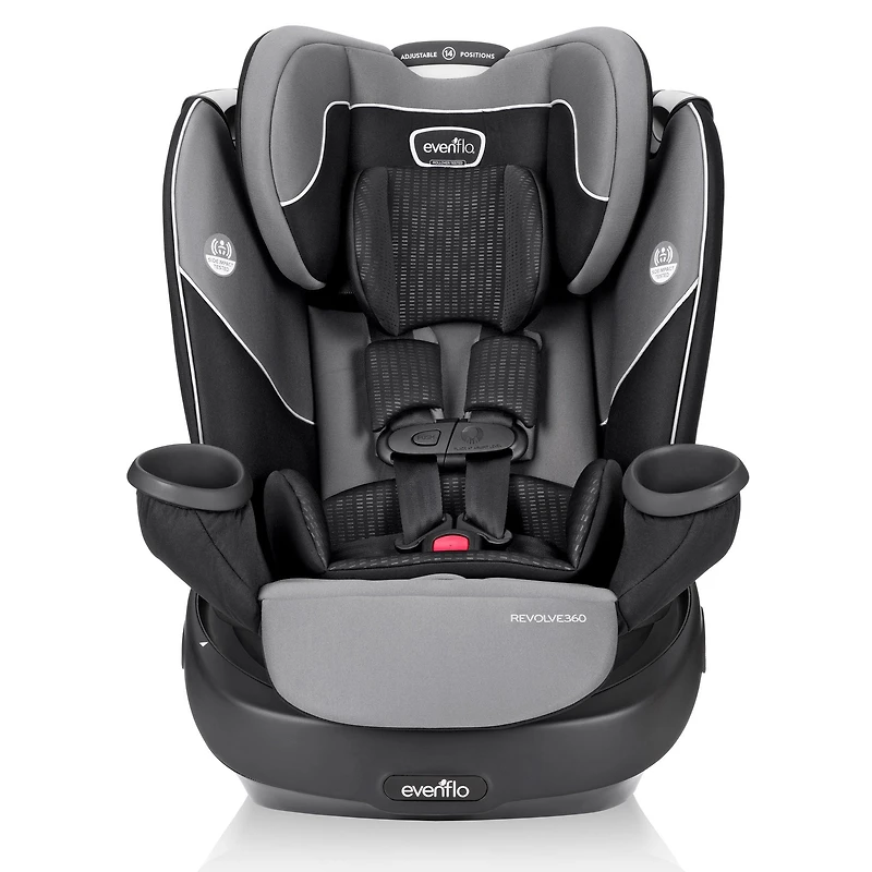 L'avenir de l'innovation dans le domaine des sièges d'auto est là : Introduction du siège d’auto tout-en-un rotatif Revolve360MC d'EvenfloMD. Une fois de plus, Evenflo montre la voie avec ce siège rotatif à usage prolongé, facile à tourner et à installer. Conçu pour les enfants pesant de 1,8 à 54,4 kg (4 à 120 lb), le Revolve360 permet de charger et de décharger l'enfant en toute simplicité (en ménageant le bas du dos!), dans les trois modes d'utilisation. Il requiert juste une installation simple, grâce au système d'installation sécuritaire Sure360MC, qui comprend la barre LockStrongMC, qui se tire vers le bas pour verrouiller le siège d'auto dans la base et Tether360MC, qui maintient le siège en position et en sécurité dans le véhicule. Conçu avec tout ce qui convient, le Revolve360 entoure également l'enfant avec le confort et la sécurité de tous les jours. De la naissance à dix ans, c'est vraiment une façon révolutionnaire de se déplacer.