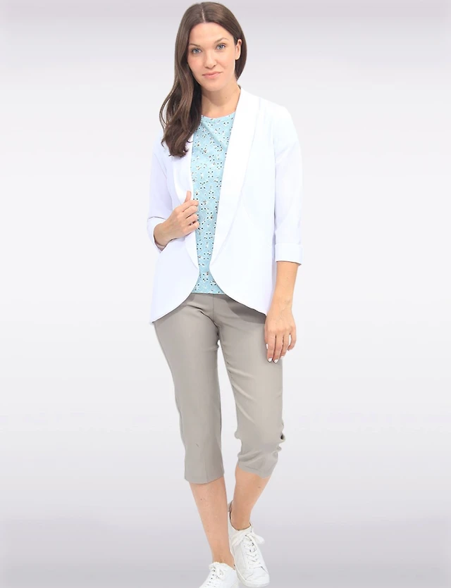 Sleek Stretchy Rounded Hem Blazer With 3/4 Sleeves and Rolled Cuff By Vamp