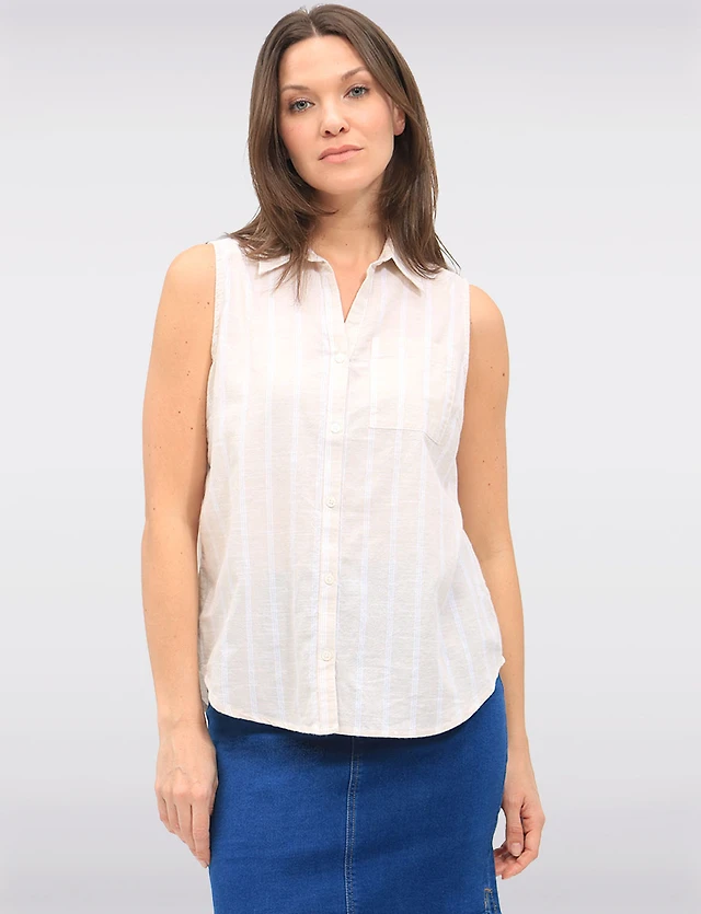 Manteaux | La maison du manteau au Québec Blouse Sans Manches en Coton Rayée Boutonnée avec Poche Poitrine par Dash