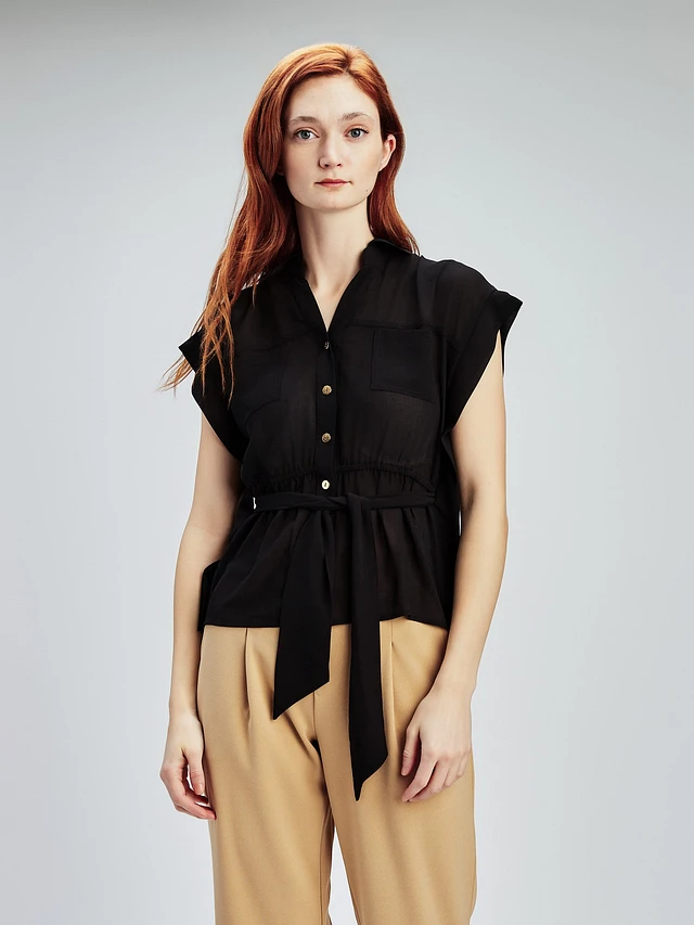BLOUSE SEMI-TRANSPARENTE À VOLANTS