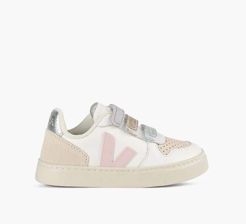 Les baskets V-10 de VEJA sont là pour faire sourire les petits pieds. Fabriquées en cuir Organic Traced, elles se parent de couleurs ludiques et d’un esprit écoresponsable. Dotées de semelles en caoutchouc amazonien et d’une doublure recyclée, elles sont douces pour la planète et confortables pour les orteils. Un look joyeux et responsable, 100 % brésilien.