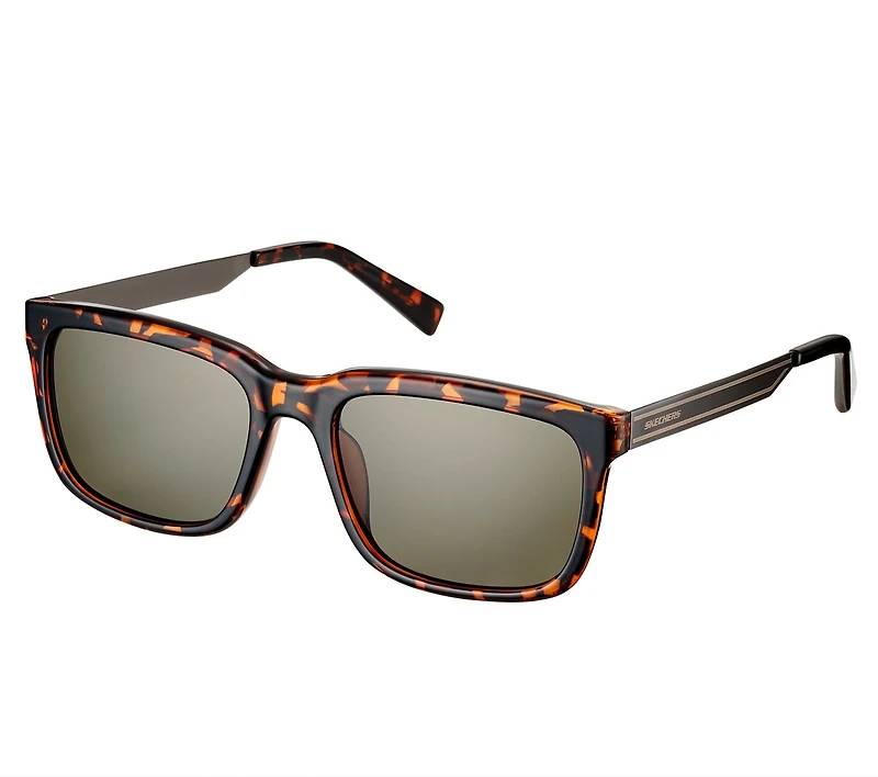 Classic style gets a modern refresh in Skechers Men's Square Tortoise Lens Sunglasses. This everyday pair features square tortoise frames and tinted lenses. Includes a Skechers pouch that also doubles as a cleaning cloth.