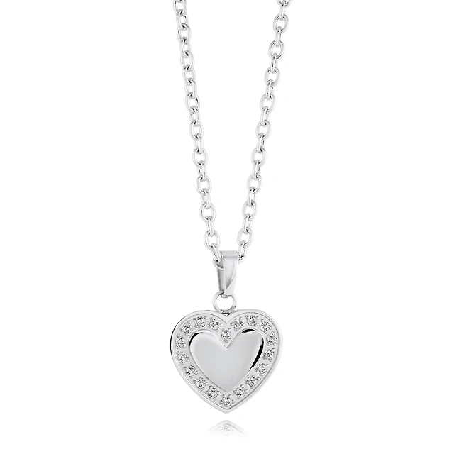 Stainless Steel Heart Pendant Necklace with Cubic Zirconia – 18