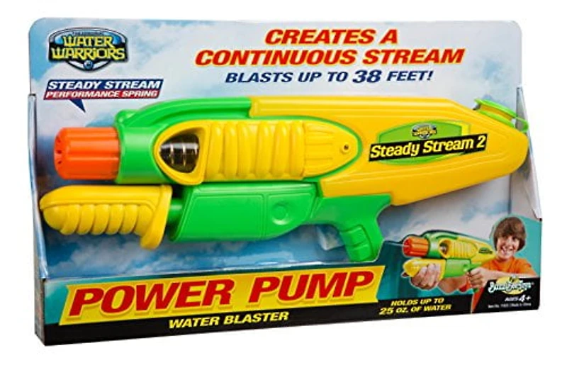 Buzz Bee Toys Water Warriors Steady Stream Water Blaster est idéal pour une attaque surprenante! Il dispose d'un ressort de performance de flux constant qui vous permet de libérer un long flux continu d'eau. Il suffit de remplir le réservoir d'eau, de tirer la poignée de la pompe en arrière et de continuer à pomper pour imbiber une cible jusqu'à 38 pieds de distance! Aucune gâchette n'est nécessaire. Idéal pour les parcs, les plages et les moments de plaisir dans le jardin! Comprend un 17 po. long, 25oz. pistolet à eau. Recommandé pour les enfants de 4 ans et plus.