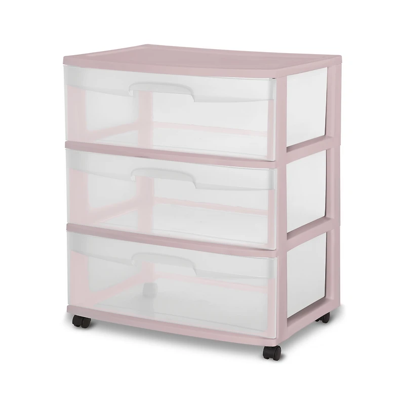 Sterilite Grand Chariot à 3 Tiroirs - Rose