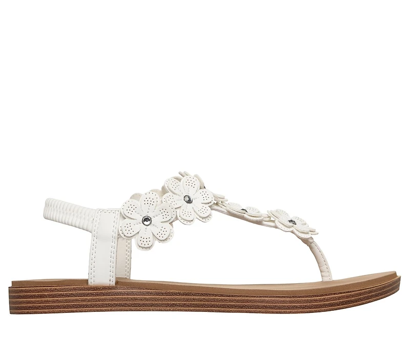 Arborez un look de plage décontracté grâce à la sandale Skechers Cali® Summer Cove - Beach Bloom. Cette sandale de plage à sangle arrière comprend une empeigne en cuir végétalien avec découpes florales ornées de pierres Strass, ainsi qu’une semelle intérieure Luxe Foam® confortable.