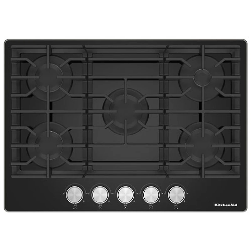 Surface de cuisson au gaz à 5 brûleurs de 30 po de KitchenAid (KCGG530PBL) - Noir
