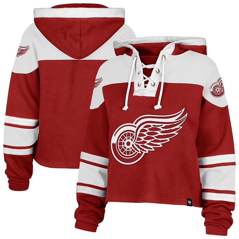 Sweat à capuche court lacets de qualité supérieure pour femme '47 Red Detroit Wings