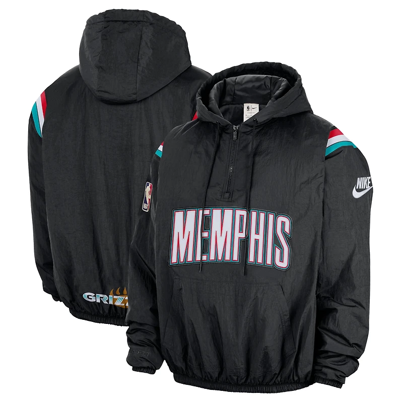 Sweat à capuche demi-zippé Nike Black Memphis Grizzlies Classic Edition Hardwood Classics Therma-FIT pour homme