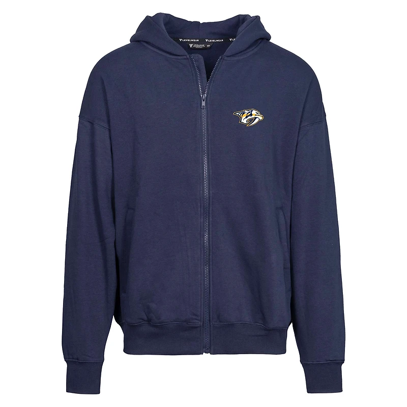 Sweat à capuche entièrement zippé Levelwear pour hommes, Nashville Predators Uphill Insignia, bleu marine