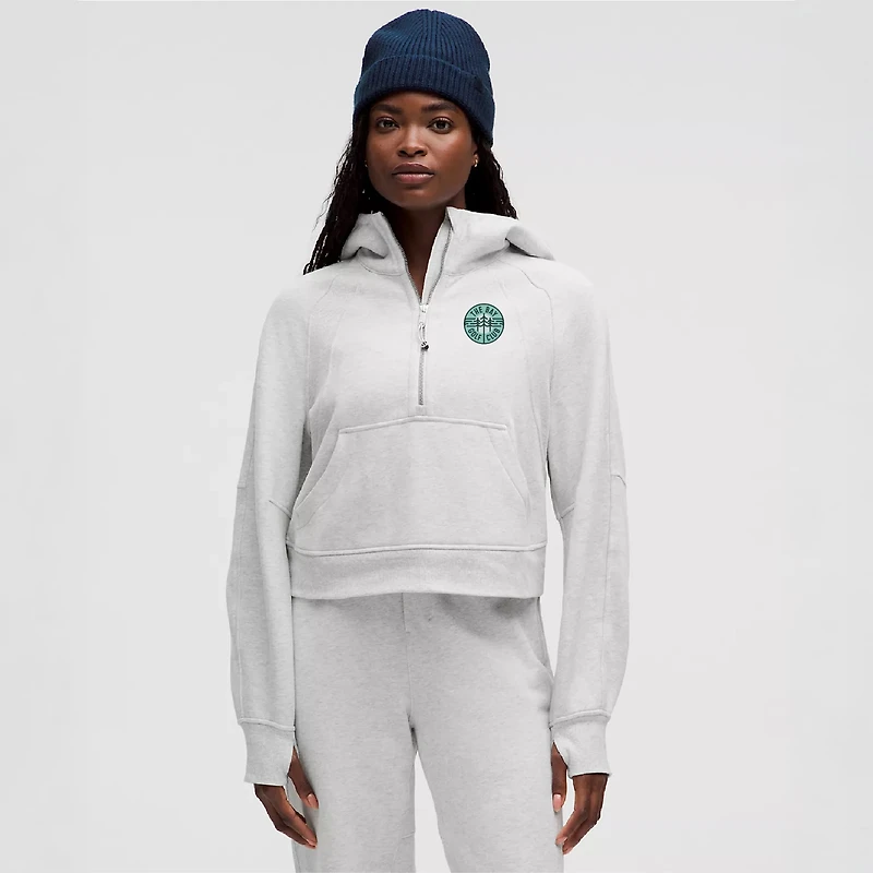 Affichez votre soutien au Bay Golf Club avec ce sweat à capuche Scuba oversize à demi-zip. Conçu pour un confort et un style ultimes, ce sweat lululemon est idéal pour les journées de golf plus fraîches. Son molleton doux et respirant en mélange de coton est doté d'un intérieur brossé confortable, pour une sensation de bien-être absolu, que vous soyez sur le green ou en train de vous détendre entre amis. Sa coupe oversize, sa poche kangourou et ses passe-pouces allient mode et fonctionnalité, tandis que la tirette élastique de la fermeture éclair peut même servir d'élastique à cheveux improvisé. Les broderies et le souci du détail font de ce sweat un incontournable pour tout fan du Bay Golf Club.