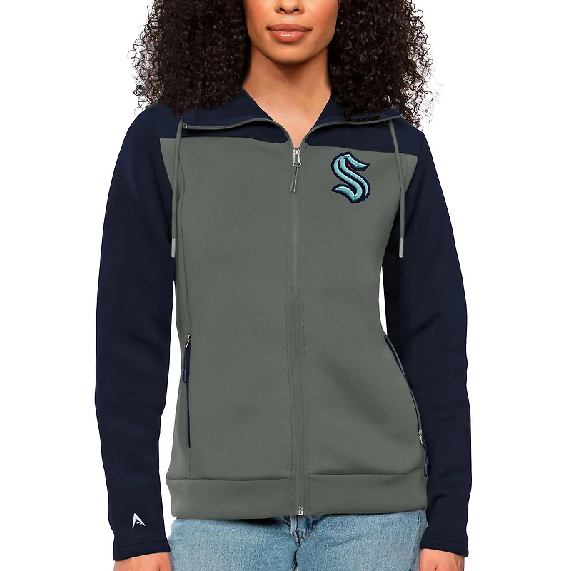 Sweat à capuche zippé Antigua Navy/Steel Seattle Kraken Protect pour femme