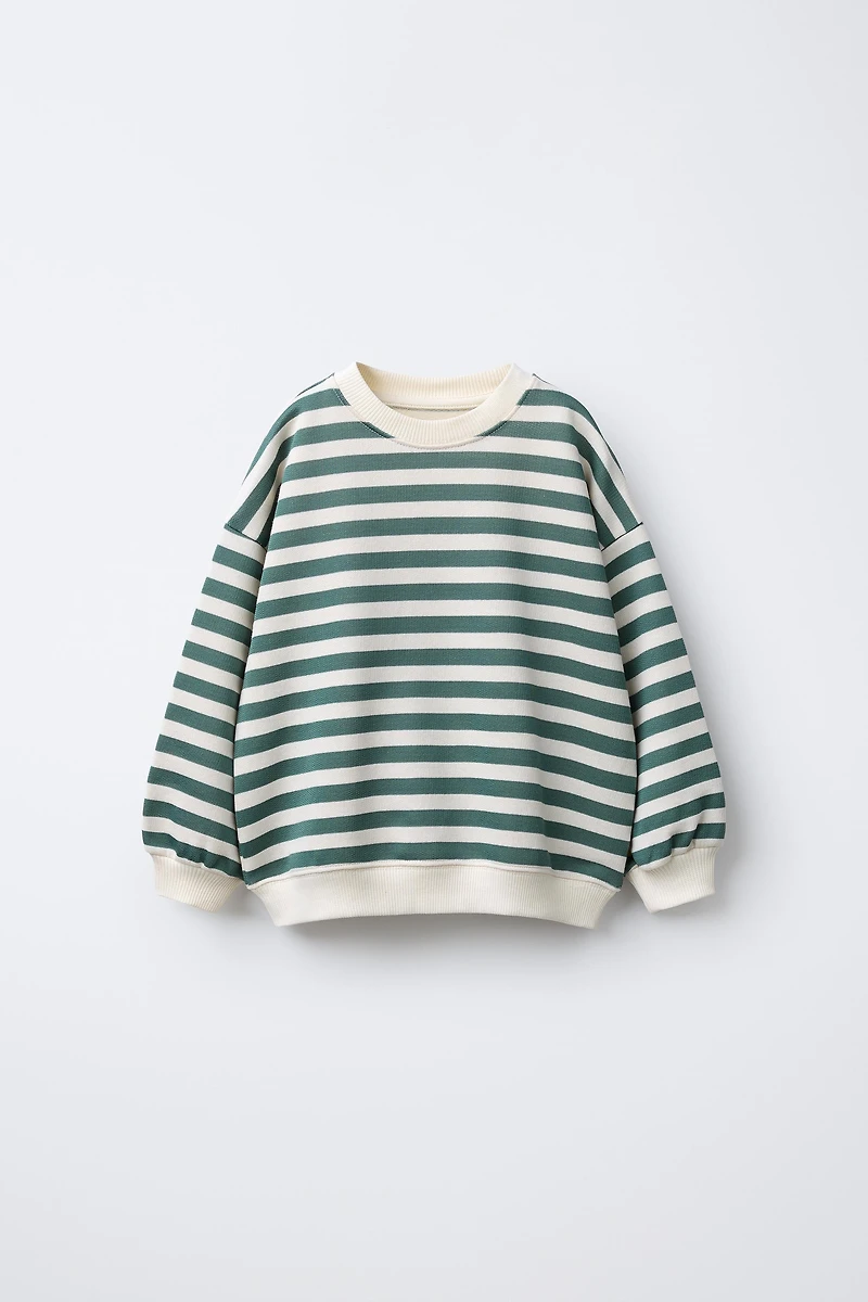 Sweat à col rond et manches longues. Finitions côtelées. Imprimé à rayures. Tissu avec 52 % de coton.