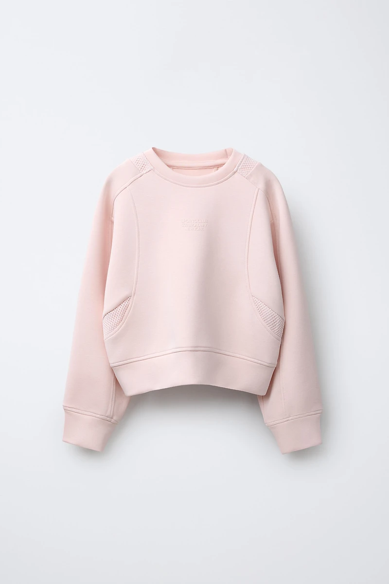 Sweat à col rond et manches longues. Détail résille sur les côtés et inscription imprimée sur la poitrine.