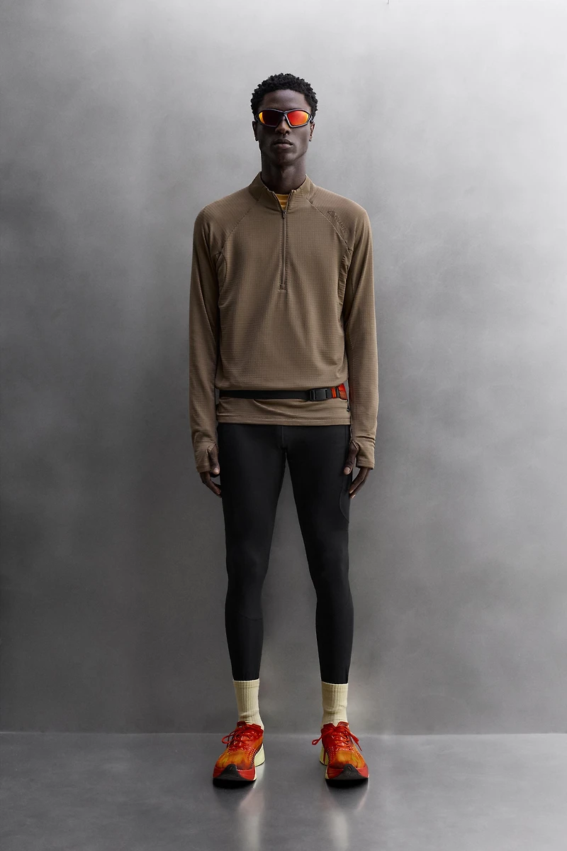 Sweat léger confectionné en tissu technique Polartec© avec l'intérieur à structure waffle.