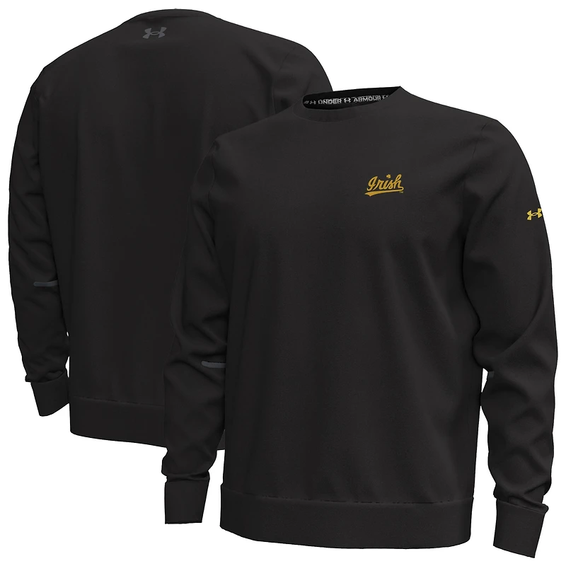 Sweat-shirt en polaire Under Armour noir pour homme, modèle Fighting Irish de Notre Dame, mélange trois matières métallisées.